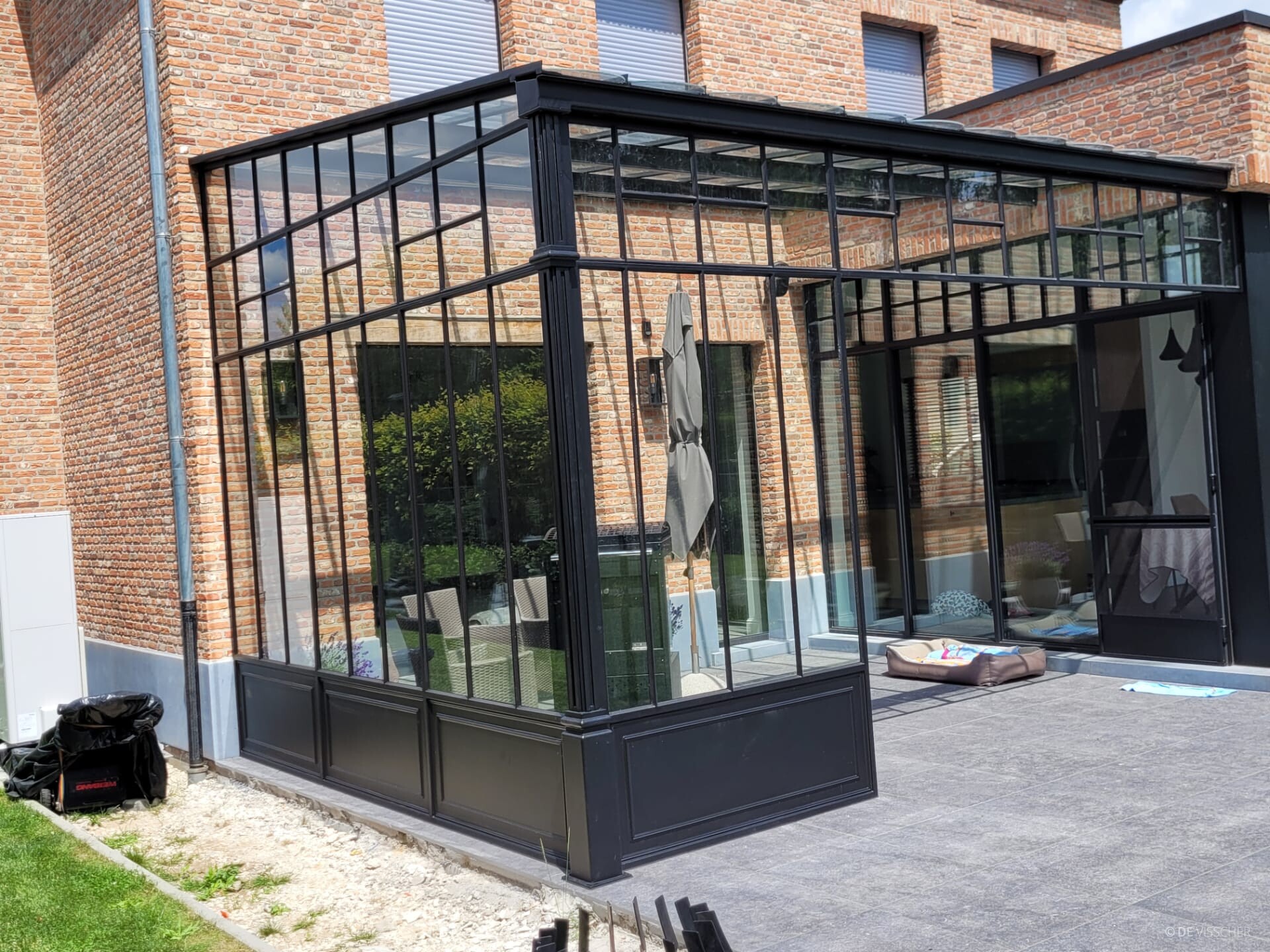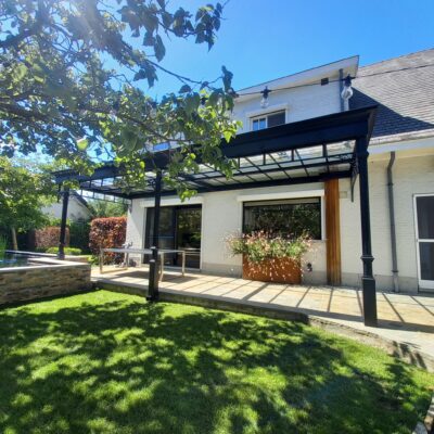 “Wilt u meer genieten van de zomer? Een terrasoverkapping vormt dan een elegante uitbreiding van uw huis. Onze overkappingen worden op maat gemaakt en eventueel voorzien van extra zijwanden die bescherming bieden tegen wind en regen. Ze worden steeds behandeld om roestvrij te blijven en vereisen geen onderhoud. U heeft de keuze tussen helder glas of een ander type gelaagd glas (zoals crepi, mat glas, enzovoort)”
