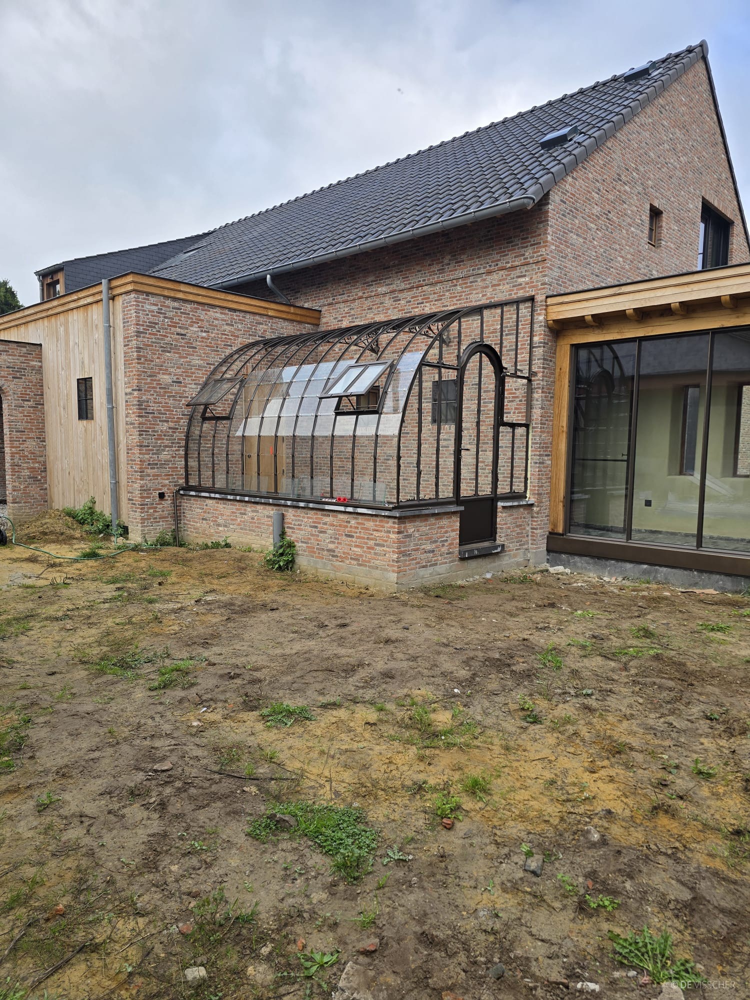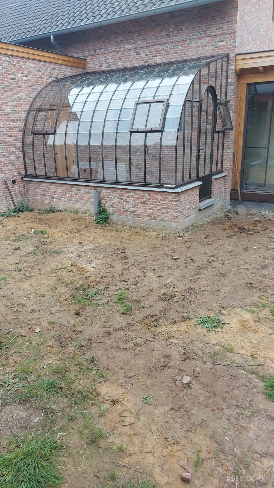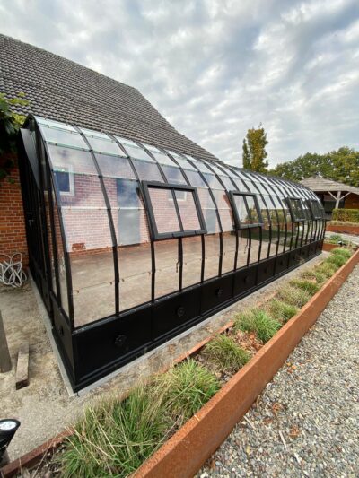 “In serres wordt gebruikgemaakt van gelaagd glas. Ze kunnen zowel op een bestaande muur geplaatst worden als voorzien zijn van stalen of glazen panelen aan de onderkant. Indien u extra verwarming in uw serre wenst, is dat ook mogelijk. We vervangen dan een glaspaneel in de nok met een stalen paneel en werken de rest rond de schoorsteen netjes af.””