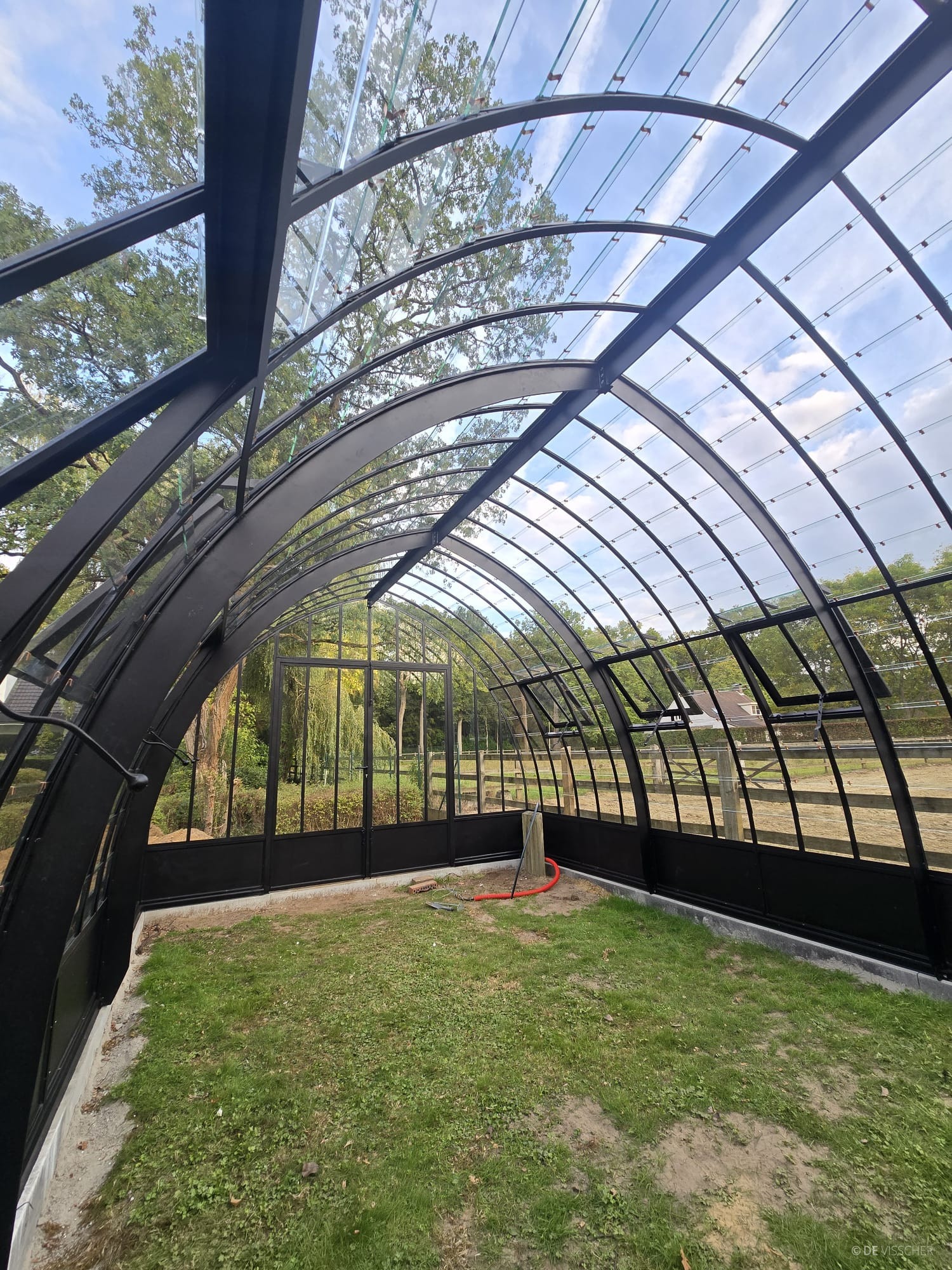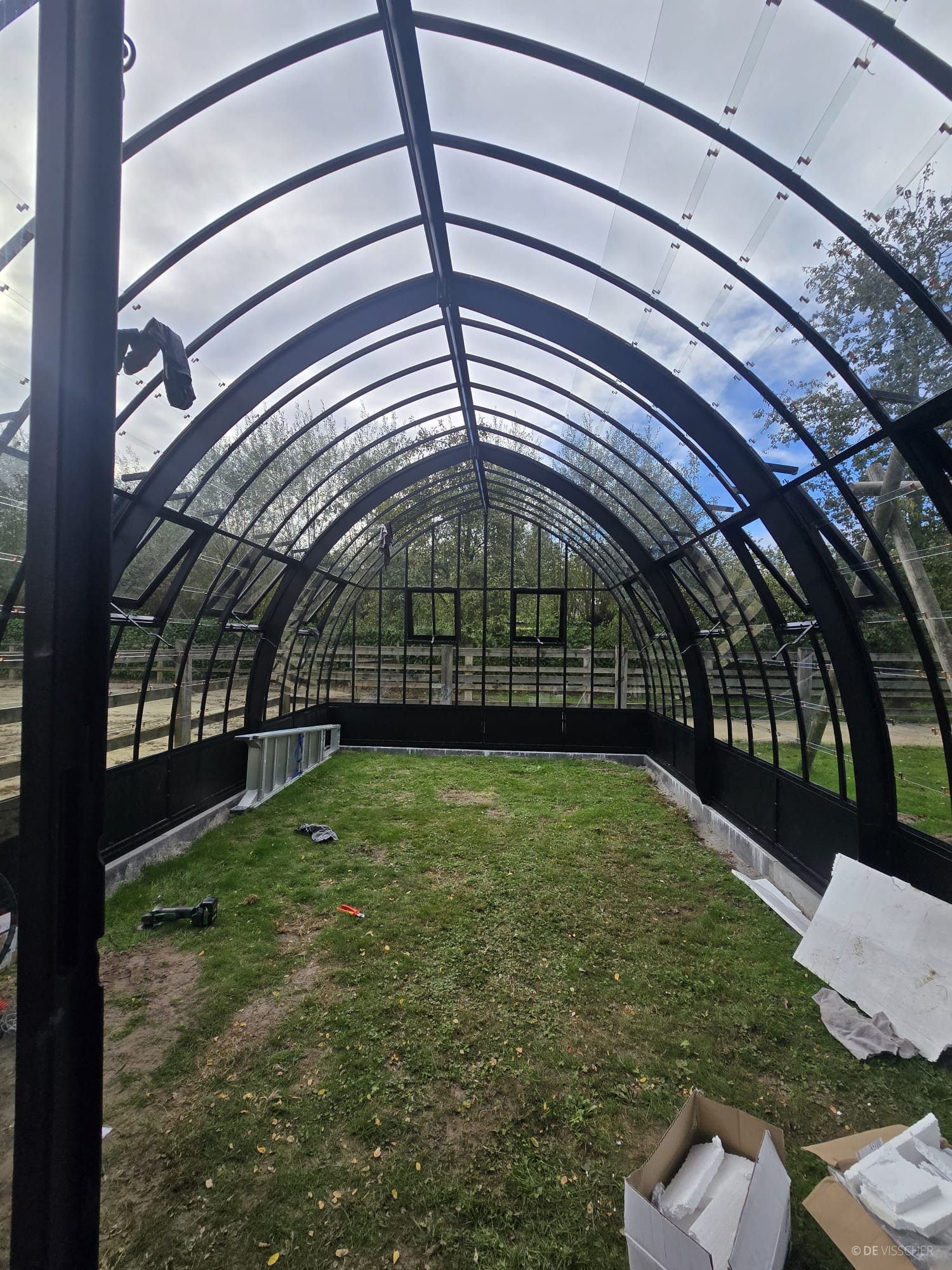 “Een serre kan elke gewenste vorm hebben. Heeft u liever een serre met een zadeldak, of misschien een hoornboomdak? U kunt vrij kiezen voor de gehele constructie: van het type spanten en trekkers tot aan de nok en verder.”